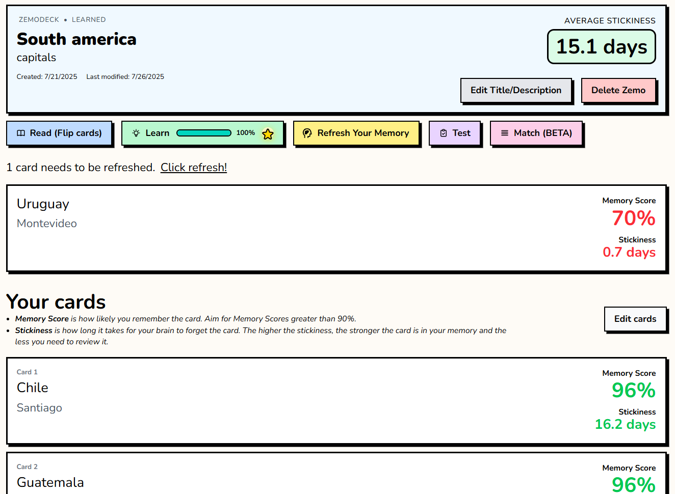 ZemoMemo's spaced-repetition engine is tuned by education scientists so your cards resurface just before you forget them.