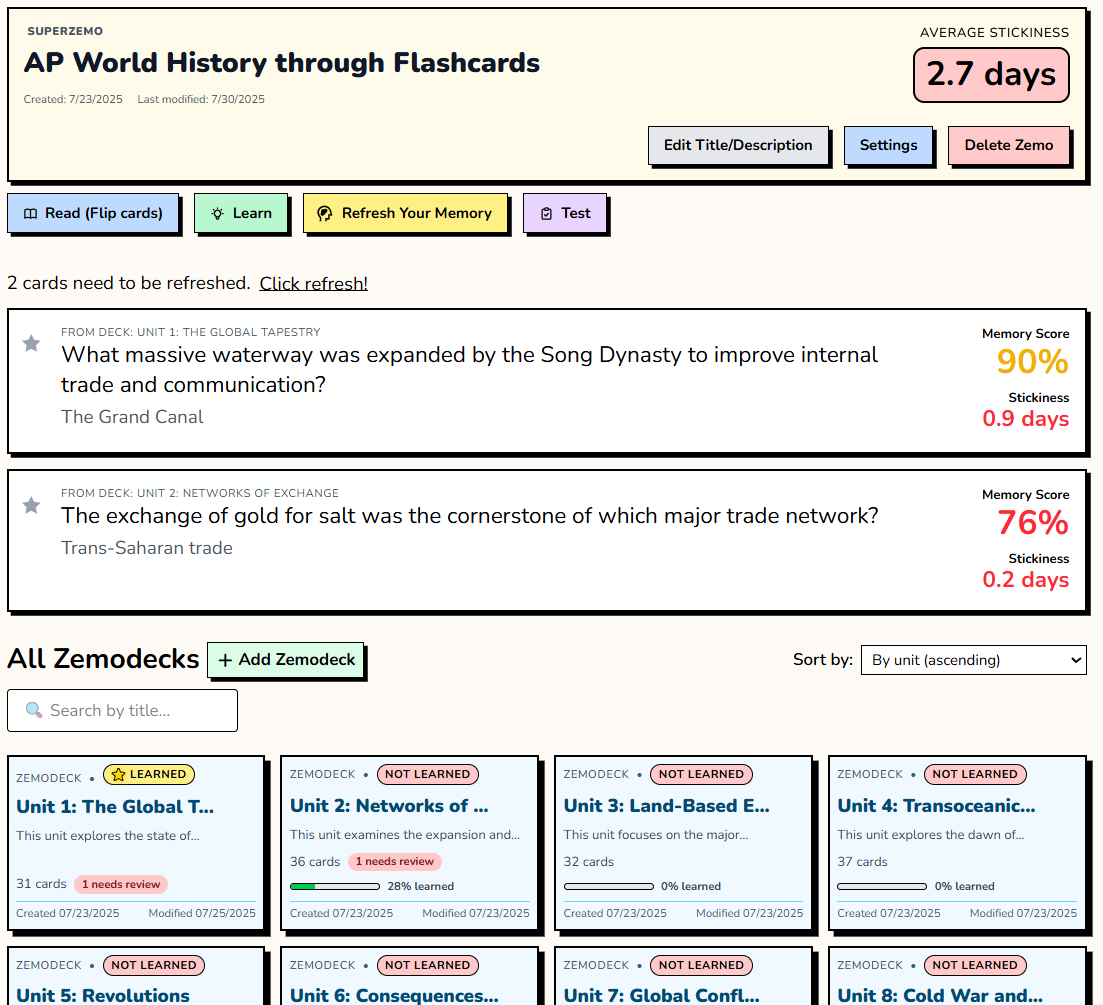 "...A lot of the decks are geared towards students so that's nice too; I use ZemoMemo for studying AP classes"— High school student from California